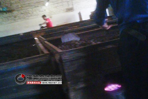 % |3 n+ `. \1 `7 ?5 l+ N(暗访时的情景:工人正在使用煤炭熏制槟榔。) 红网湘潭6月4日讯(潇湘晨报滚动新闻记者 肖洋桂)湖南伍子醉食品有限公司被爆涉嫌使用煤炭熏制槟榔,今天(6月4日)上午,湘潭县荷花中路湖南伍子醉食品有限公司,此前熏制槟榔的车间除被熏得焦黑的屋顶和被烘烤得泛黄的四壁外,房间已被闲置并清空。 对于此前暗访到“用煤炭熏制槟榔“等情况,该厂一位姓肖的负责人拒不承认。 湘潭市质监局一位分管食品安全的潘姓负责人表示,使用煤炭熏制槟榔,将导致槟榔砷超标,这对人体健康会产生危害,质监部门将立案调查。 2 Q) V9 B" ]4 o5 _7 n: g% J