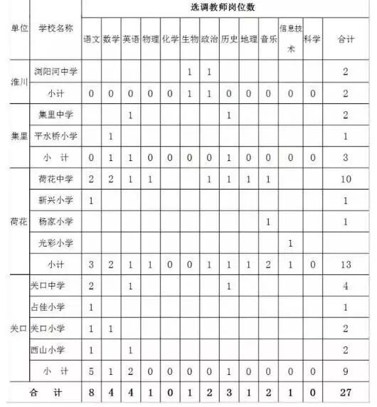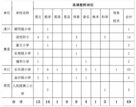 2.部分城区十一所小学选调岗位