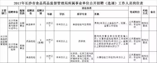 7 e( [4 v* @ Z5 M3 w( \. s' n2017年长沙市食品药品监督管理局所属事业单位公开招聘(选调)