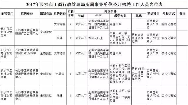 2017年长沙市工商局所属事业单位公开招聘