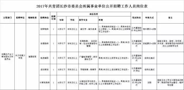 2017年共青团长沙市委员会所属事业单位公开招聘