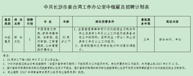 中共长沙市委台湾工作办公室公开招聘中级雇员简章9 `! q! J6 O! v% g* x