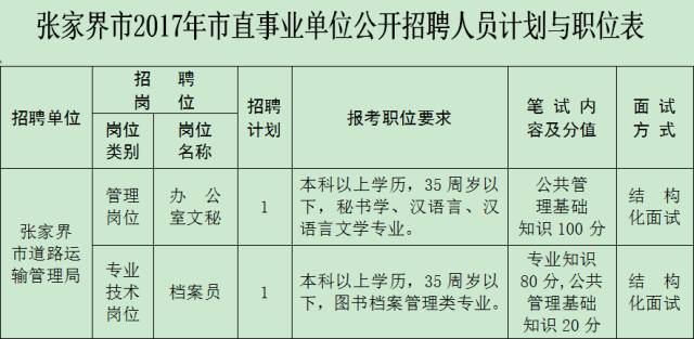 张家界市2017年市直27个事业单位公开招聘人员35名。