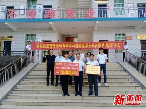 衡阳新闻网讯通讯员连帆涛 记者程聪报道9月2日上午,耒阳市亮源乡党政机关大楼前坪举行简短的爱心扶贫捐赠仪式,深圳源创智能照明有限公司为亮源乡捐赠了价值20万元的80盏太阳能智慧路灯,为该乡村民夜间出行送去了光亮、送去温暖。